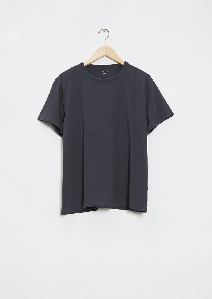 6397 washed navy signature crewneck tee with a loose fit in a soft and washed pima cotton jersey.