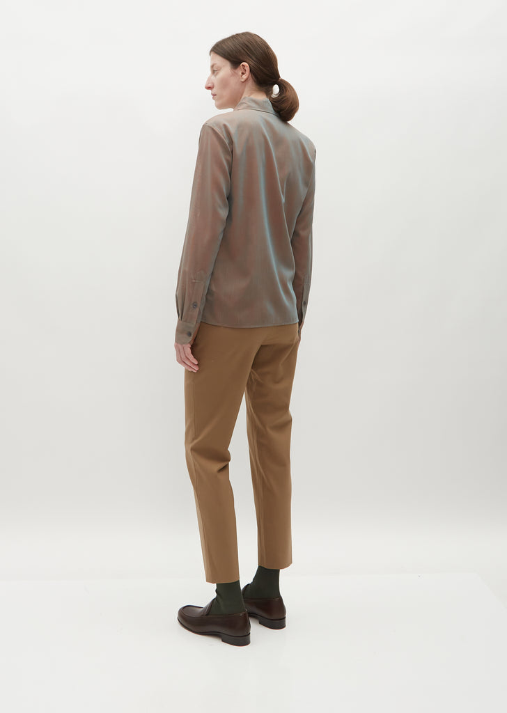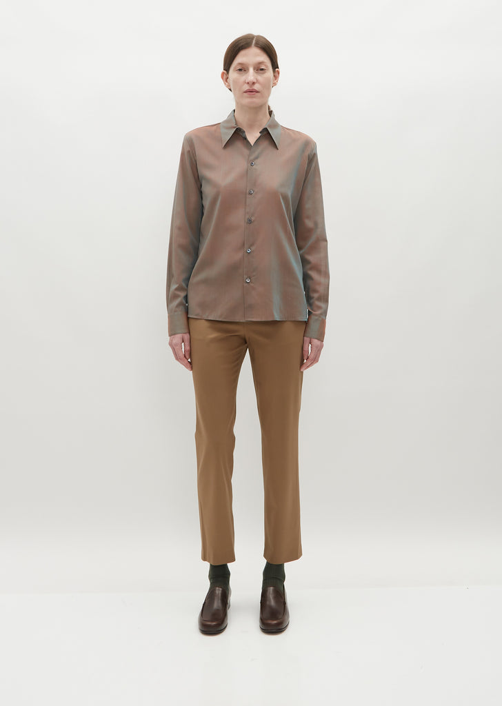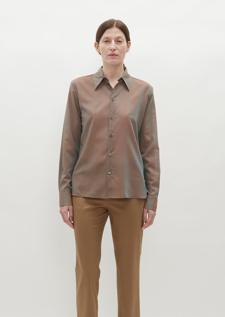 6397 sheer opal shirt with point collar in wool blend. Straight silhouette with a closer fit.