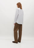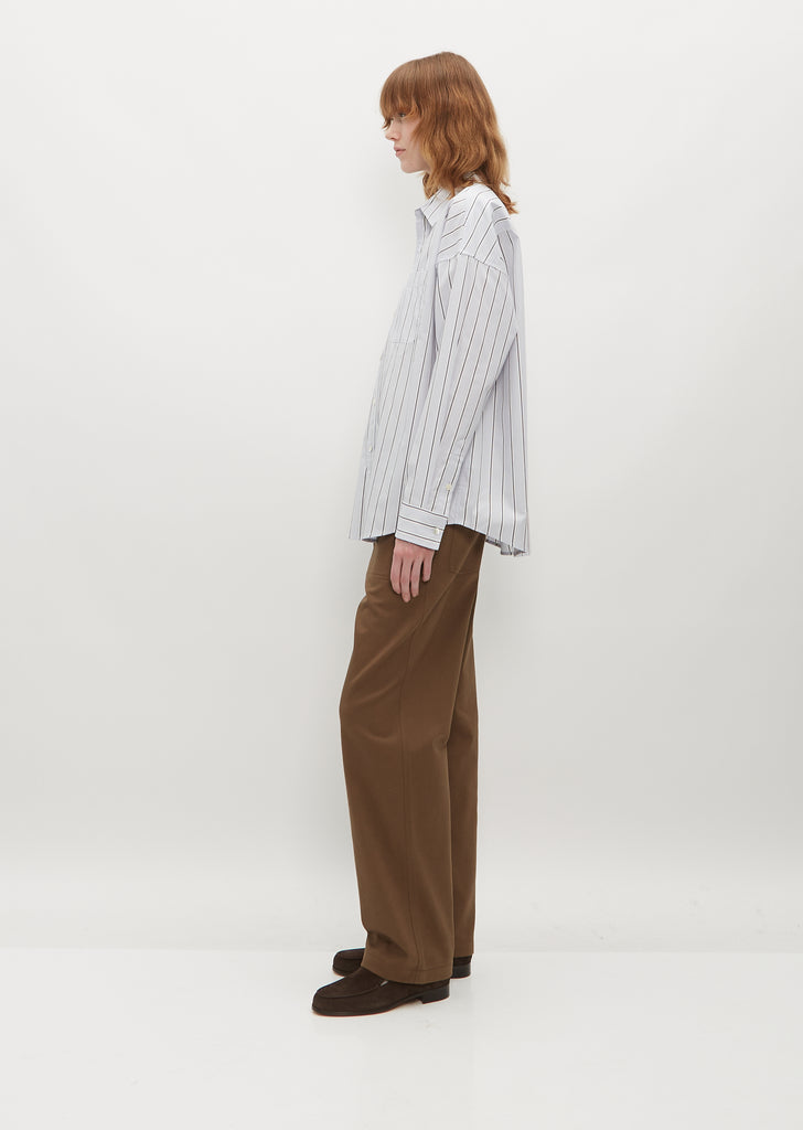 6397 light blue and navy stripe shirt with straight collar in cotton shirting. Boxy silhouette with a relaxed fit.