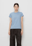 6397 washed blue shrunken tee with cap sleeves and rib trim in soft washed cotton jersey. Closer fit.