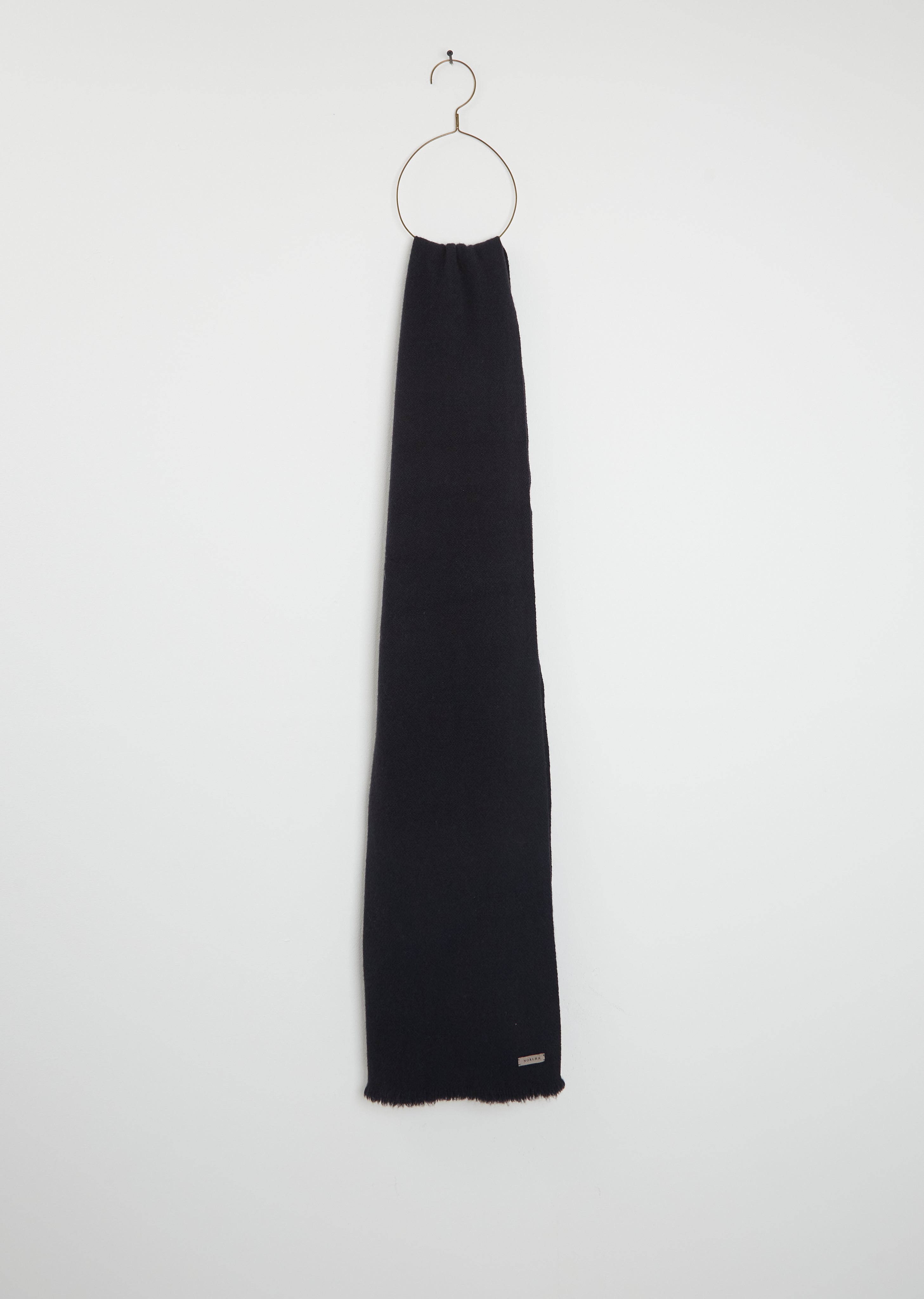 Norlha midnight blue signature rectangular scarf with fringed edges handwoven in dense yak wool sourced from local nomad cooperatives in Tibet.