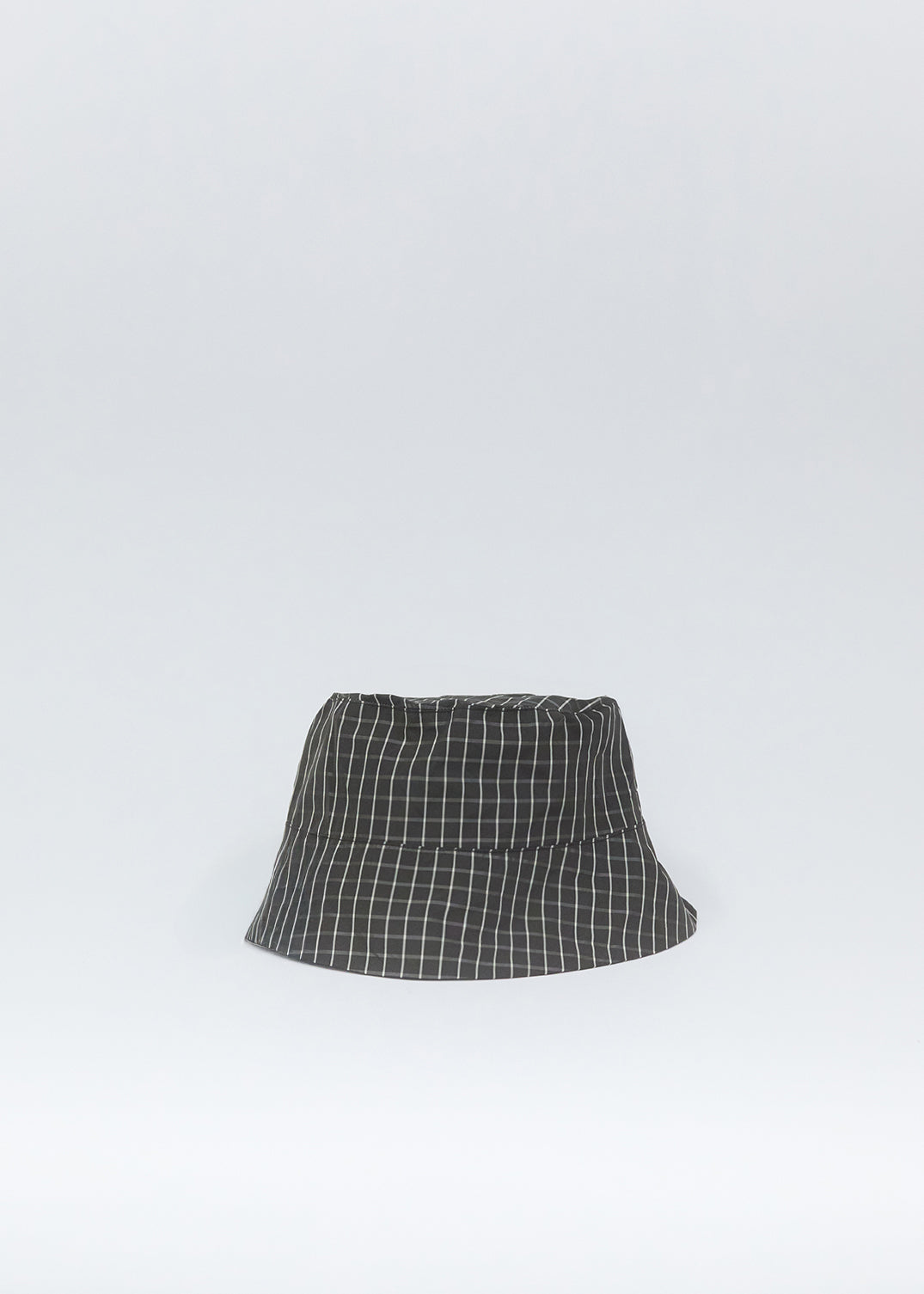 Eleph brown checks bucket hat in a lightweight technical fabric with a soft, structured shape and a downward sloping brim. Features a subtle grid pattern with fine white lines throughout, and a stitched mid-panel detail.