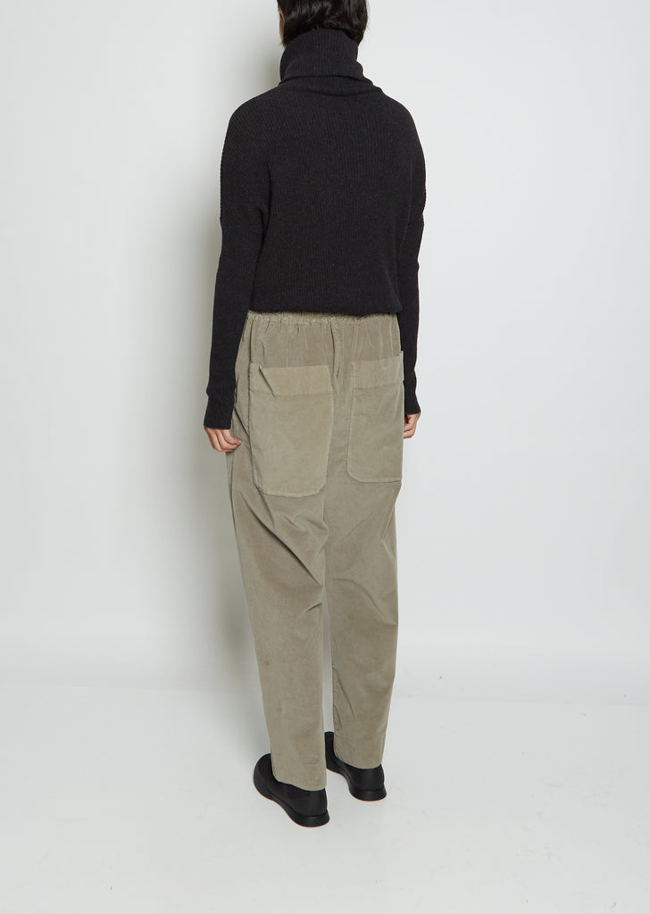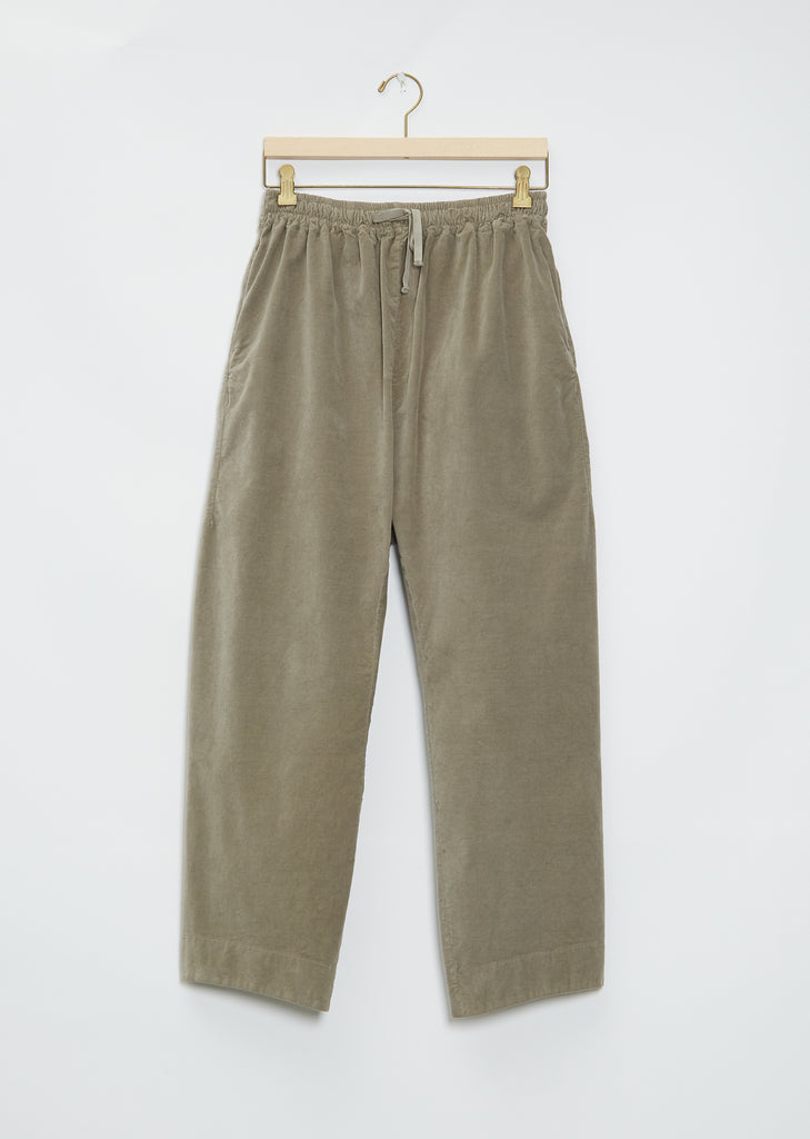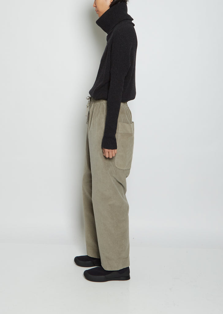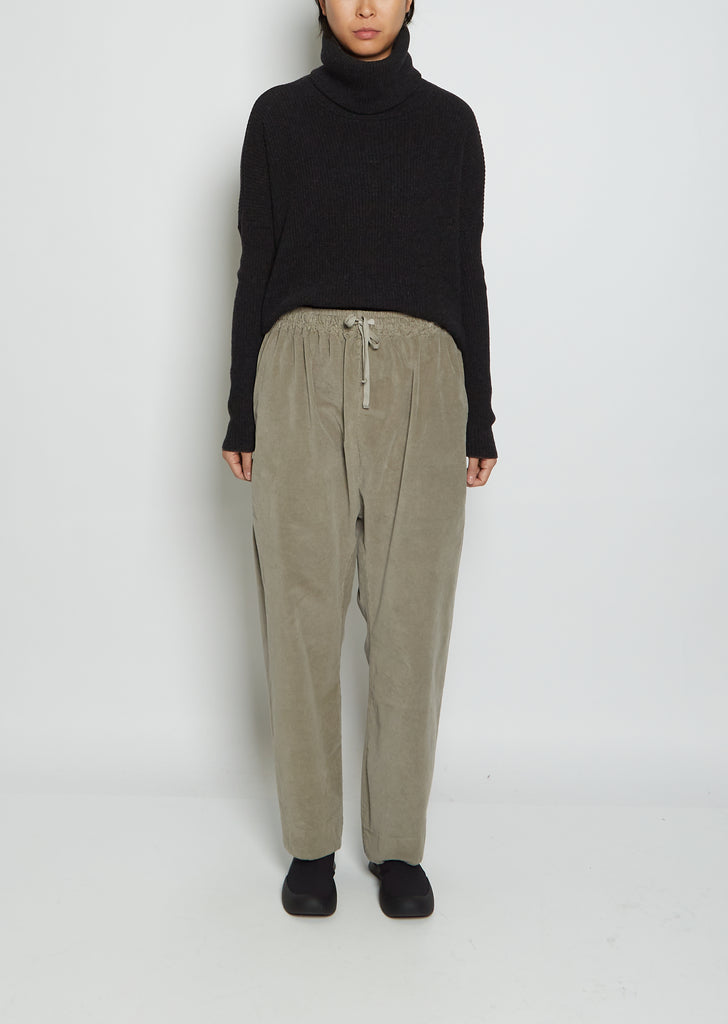 Album di Famiglia gray pull-on wide-leg pants with an elastic drawstring waistband and cuff detail at hem in cotton velvet.