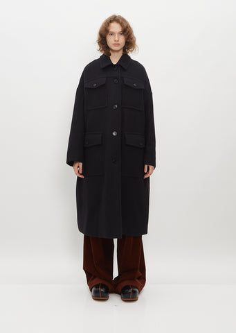 Cotton Blend Asymmetrical Raincoat — Ochre Khaki