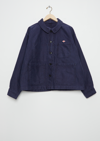 Round Collar Long Sleeve Cotton Shirt — Blue
