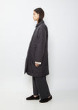 6397 black double breasted puffer coat with collar in nylon. Features two side slit welt pockets and tonal button closures. Oversized fit. Fully lined with a polyester fill.