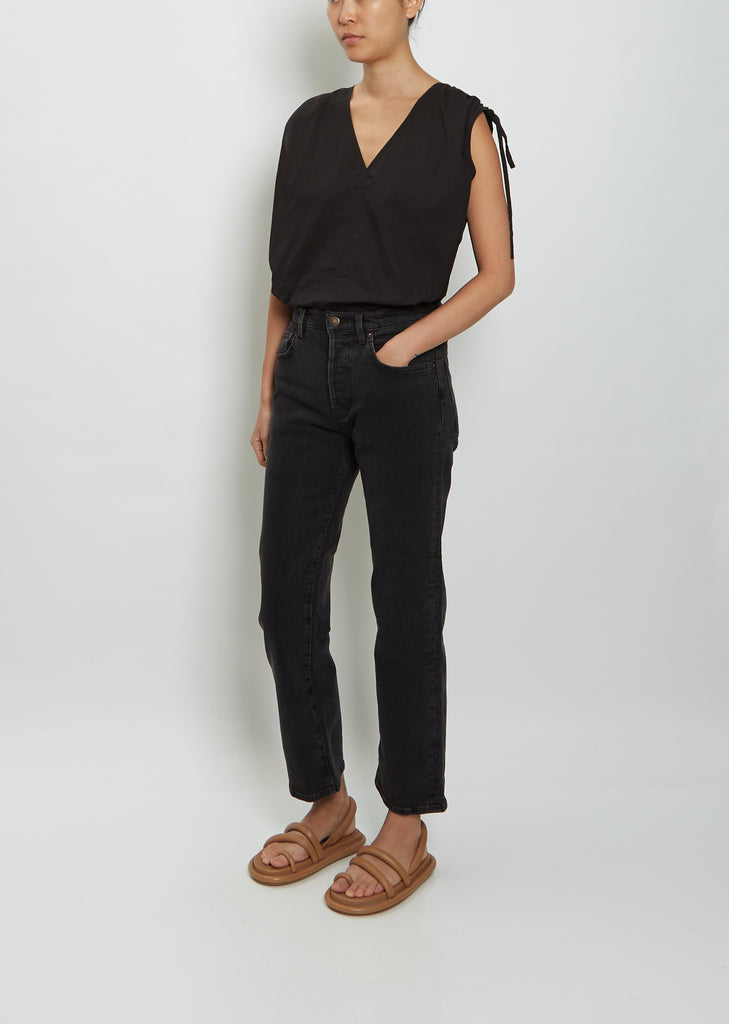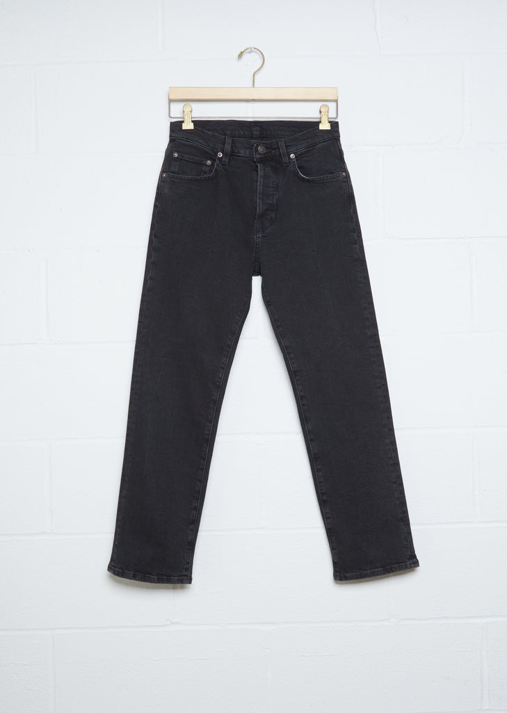 6397 classic faded black washed denim pant in a stretch cotton. Features 5 pocket styling with a leather branded patch at the back waistband. Straight-leg with a relaxed fit.
