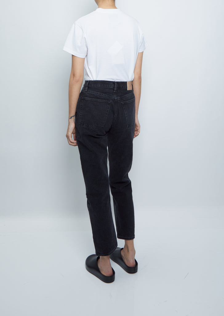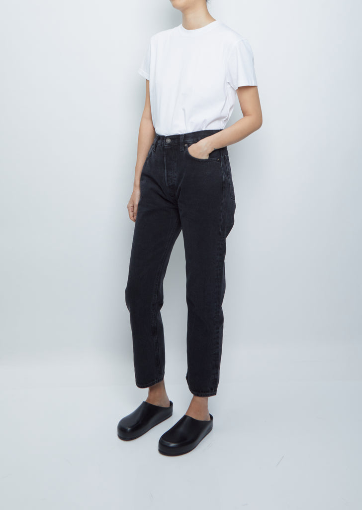 6397 washed black mid-rise, relaxed jean in a vintaged, rigid cotton denim.