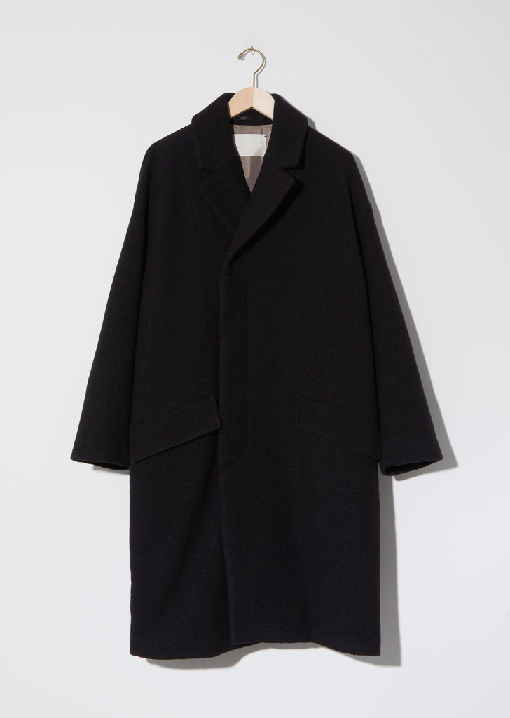 FW'20 Collection — Andym Atelier Payli Oversized Coat in Black. Single-breasted  coat with a classic notch collar and detailed with square elbow patches in a boiled virgin wool coating.