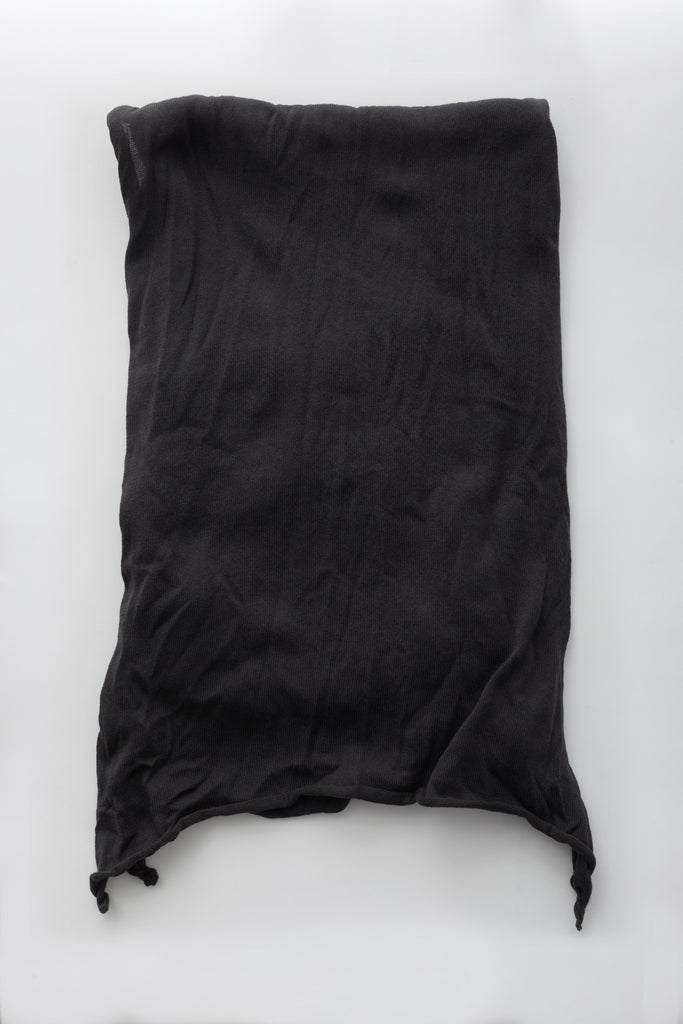Anthracite-grey long double-faced scarf stockinette-stitched from cotton-blend yarn with a hint of stretch.