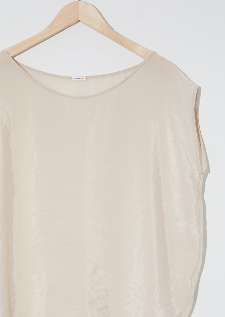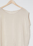 Apuntob Sleeveless Blouse in Naturale. Bone colored boatneck blouse with a cocoon shape in a lightweight cupro blend fabric with slight sheen. Baby hem finishing throughout.