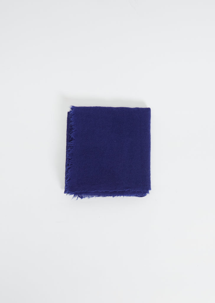 Apuntob square-shaped scarf in electric blue with a fringe edge finish in a lightweight gauzy cashmere.