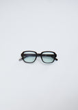 Blanc Sunglasses 023 in Black / Mint. Handcrafted in Japan, black acetate sunglasses with mint lens and slim arms; one side dipped in grey acetate — a signature detail from the Japanese label.