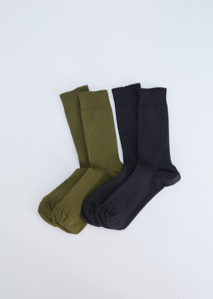 Rib Cotton Ankle Socks — Charcoal