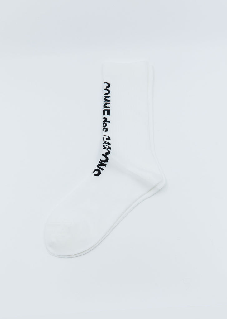 Comme des Garçons White cotton blend ribbed socks with logo printed in contrasting black.
