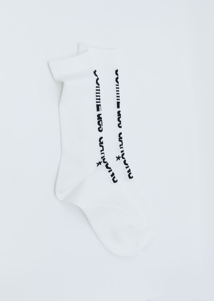 Long Ribbed Logo Socks — White