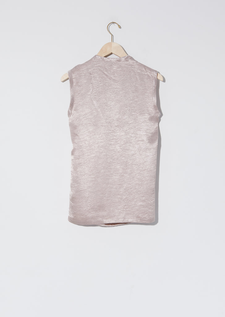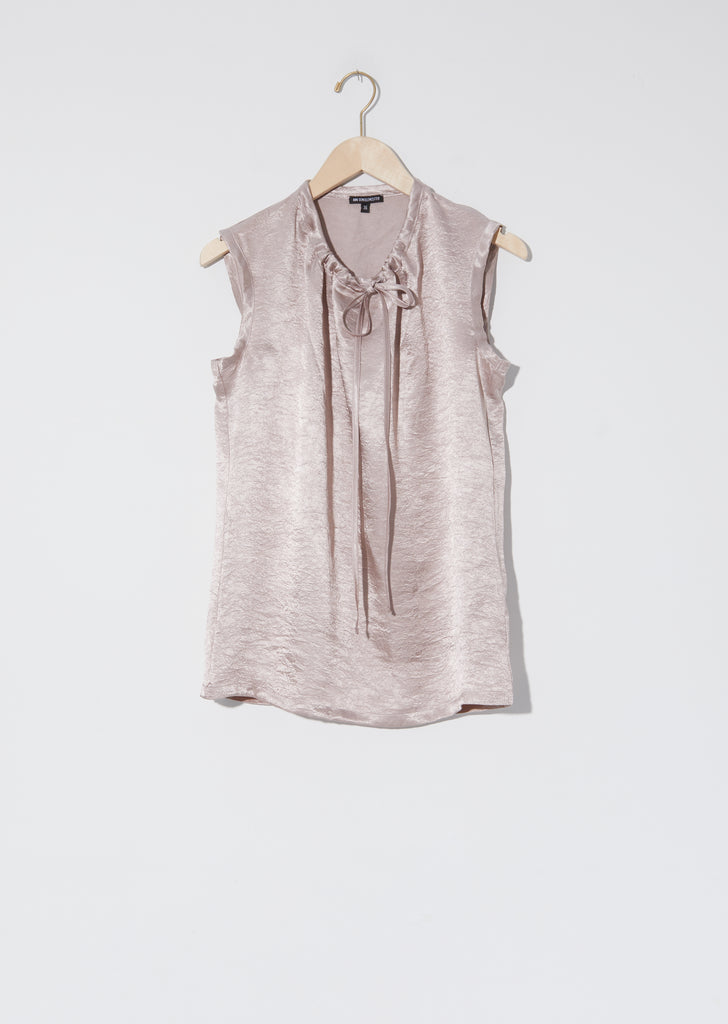 FW'20 Collection — Dusty pink sleeveless blouse featuring an adjustable neckline that can be opened up or made tighter with self ties.