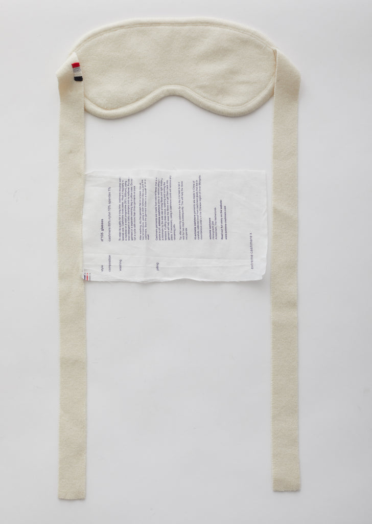 Cream essential cashmere eye mask. Stretch cashmere lends a comfortable fit. Perfect for long flights or easy Sundays. One size fits all, two straps tie at the back.