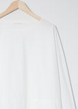 Album di Famiglia T-Shirt Tasca in Milk. Crafted in lightweight cotton shirting with a slightly washed look and feel, white popover shirt with a cross seam detail and single concealed pocket at left side. Features a long, roomy sleeve on a dropped shoulder with a high-low hem.