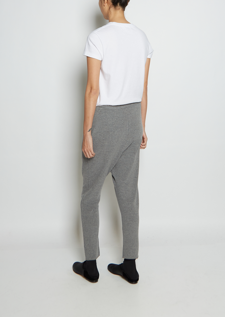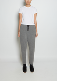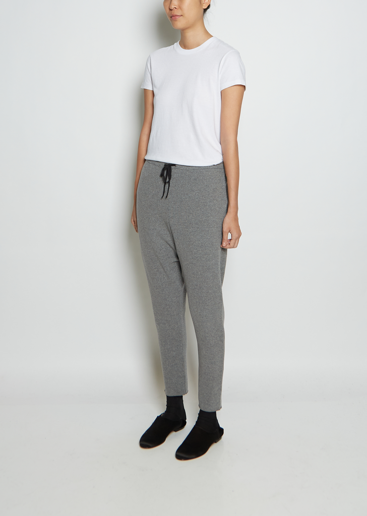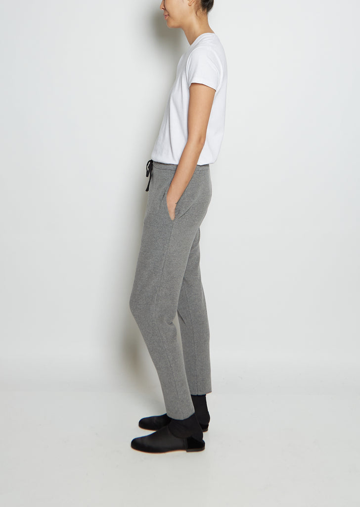 Album di Famiglia grey easy trousers with contrast black ribbon drawcord in plush cotton-blend jersey. Concealed side seam pockets.