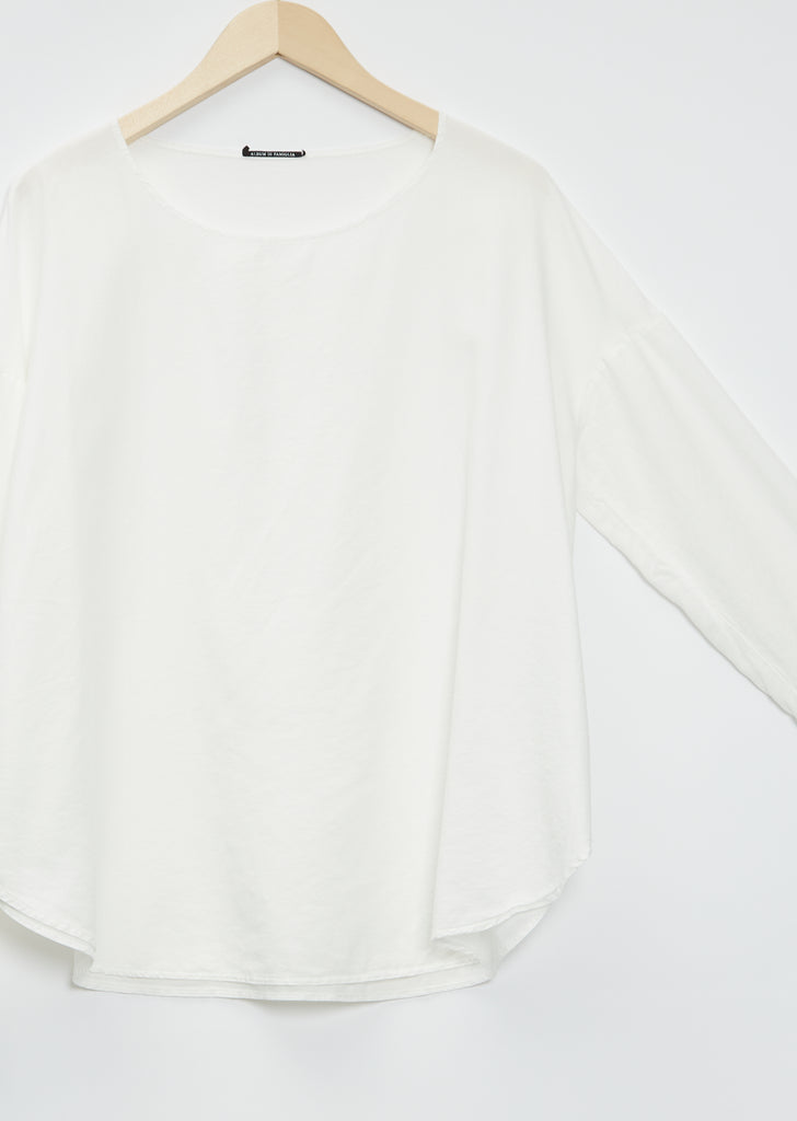 Album di Famiglia unisex milk white long sleeve tee with a rounded hem and neck in a lightweight cotton viscose jersey.