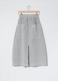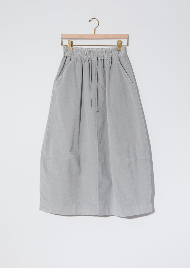 Album di Famiglia Corduroy Skirt in Oatmeal. Light grey elasticized waist balloon-shape skirt in a soft, baby corduroy. Features this season's back patch pockets and an open vent detail.