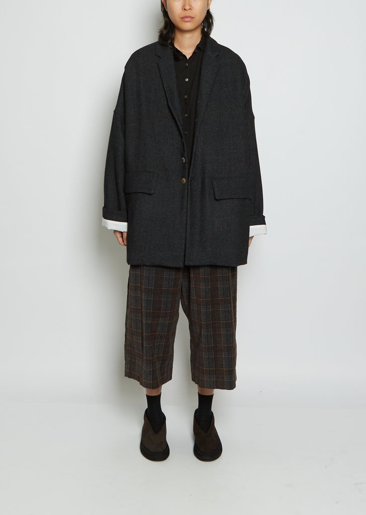 Album di Famiglia unisex almost black oversized blazer jacket with a notch collar and front flap pockets in an alpaca blend.