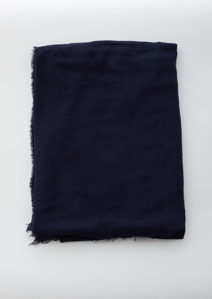 Measures 125x175cm. Also available in Beige. Color: Navy. 43% Rayon, 29% Modal, 25% Nylon, 3% Cashmere. Professional dry clean only. Made in Italy.