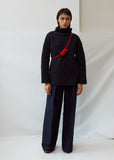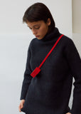 Slim lipstick case on an adjustable carry strap, crafted from cherry-red rubberized calfskin. Structured silhouette. Concealed snap-button fastening at foldover flap. Polished gold-tone metal "J" logo at front face. Press-stud fastening at adjustable shoulder/crossbody strap. Tonal stitching. Leather lining.