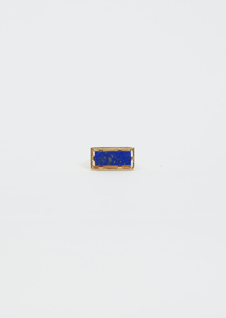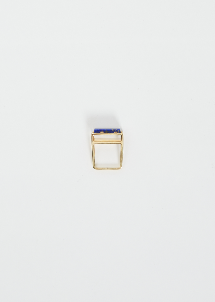 Aliita rectangular-shaped lapis lazuli stone ring with a square shaped setting in 9k yellow gold.