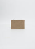 Amiacalva taupe small zipper pouch with stamped brand logo and topstitching detail in a washed cotton canvas.