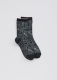 Minä Perhonen Sieste Socks in dark green. Flower stripe pattern ankle socks of pale green floral motifs on a dark green background, and detailed with dusty pink line edge trim at cuffs.