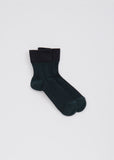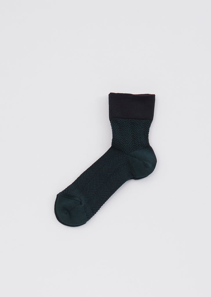 Minä Perhonen Sugar Socks in dark green color. Herringbone pattern ankle socks with doubled wide elastic rib trim cuffs.