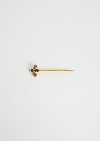Antipast bee shaped pendant with amber toned glass beads set on a bronze metal hair pin.