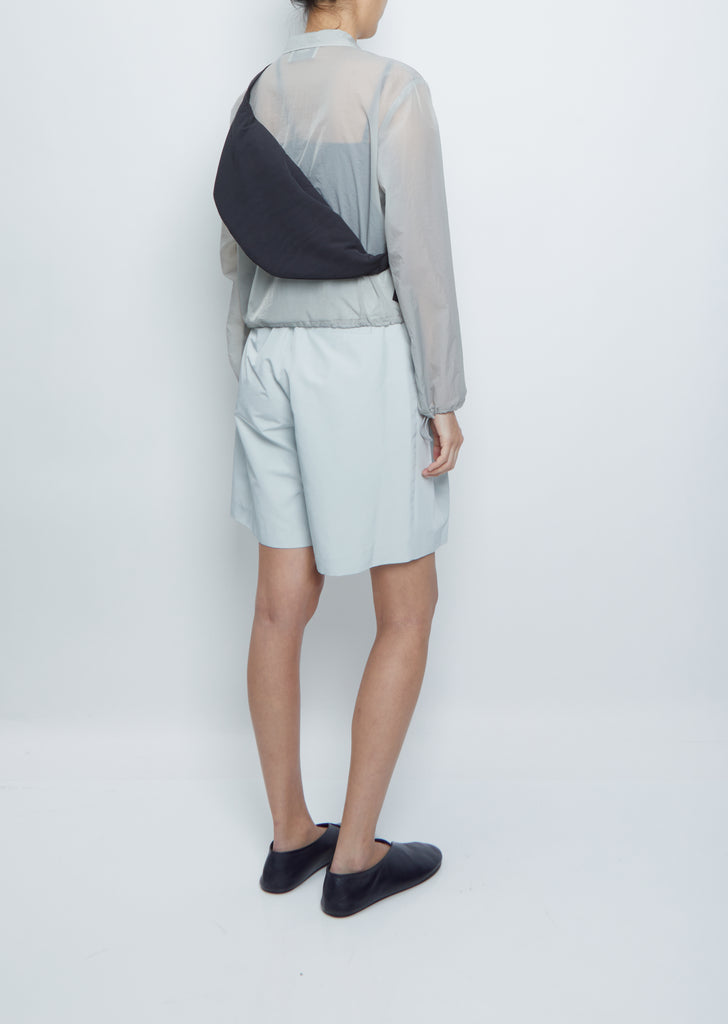 Amomento black crescent-shaped shoulder/crossbody bag with adjustable strap in nylon.