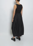 Amomento black tank dress in a scuba jersey knit with a full-length sheer nylon skirt.