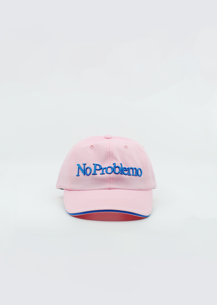 Classic 6 panel baseball cap in cotton twill with leather adjustable strap at the back. No Problemo embroidery to the front and small gothic "A" at the back.