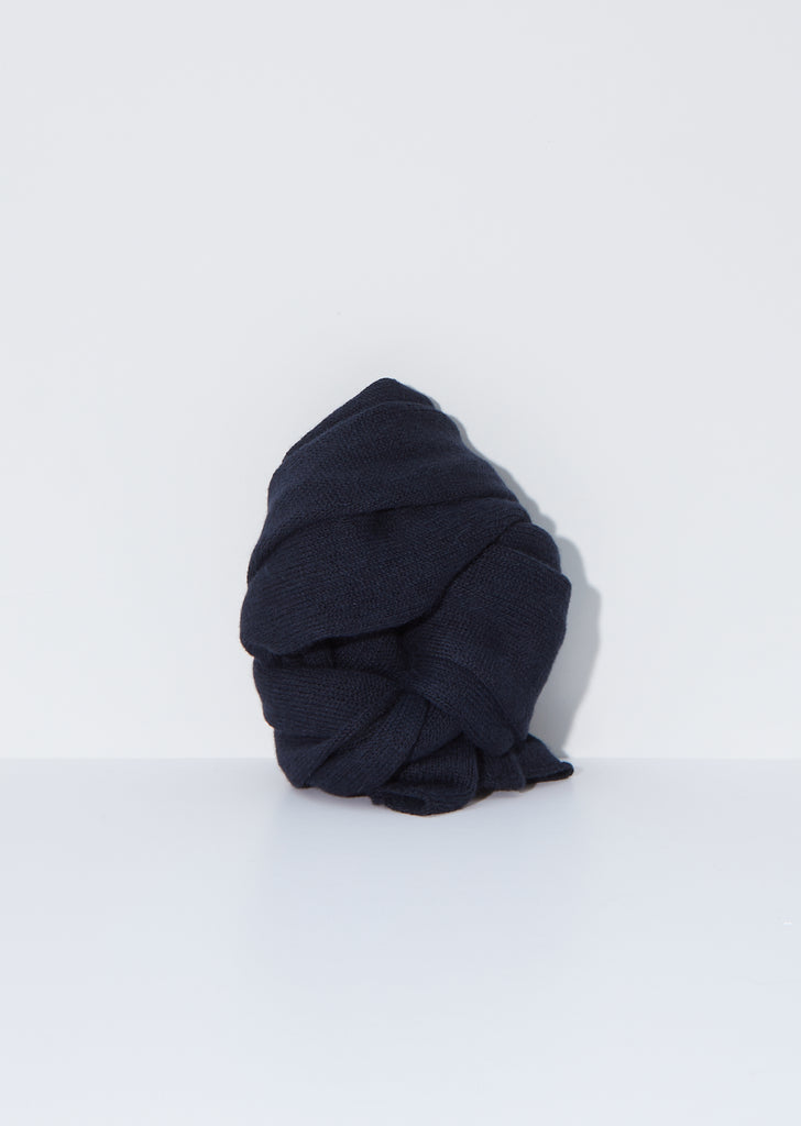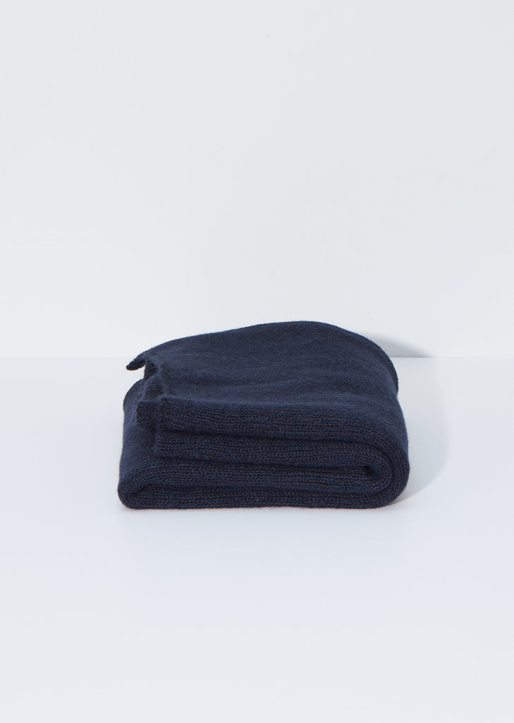 Stephan Schneider Harper's Scarf in Night. Dark navy mohair & alpaca blend knitted scarf with an elongated, rectangular shape and clean edge finish.