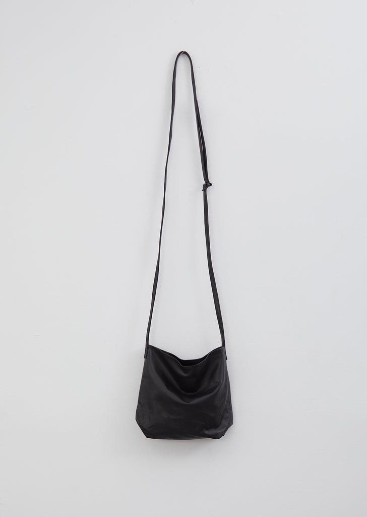 Ann Demeulemeester Medium Bag in Fulton Black. Crafted in soft leather, this classic signature bag in the medium size features and a long adjustable crossbody strap with black metal belt buckle.