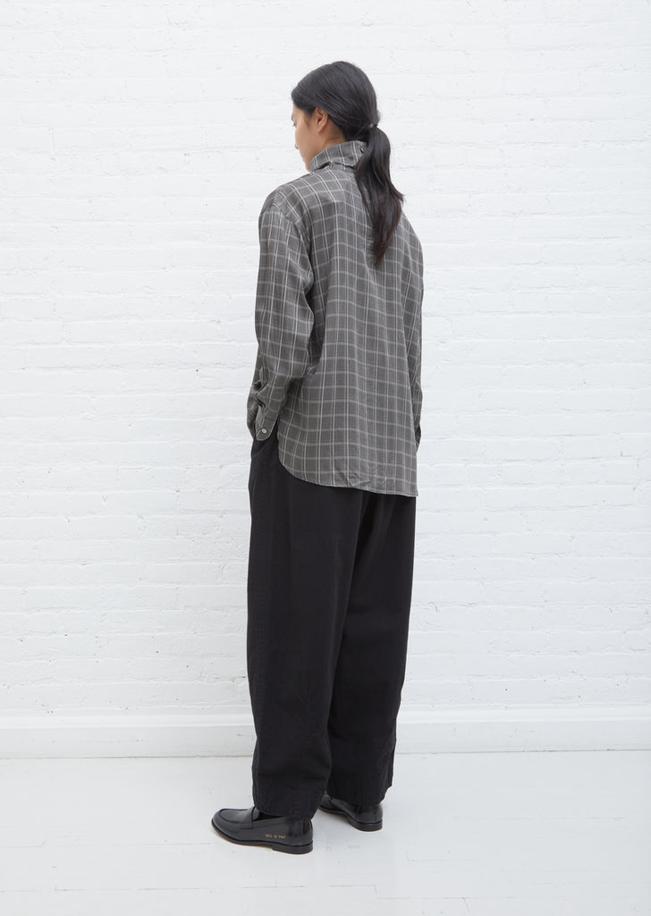 Blue Blue Japan three-shades of grey "Sumi" pigment plaid blouse with a high neck in smooth, fluid modal rayon. Features a button closure at back neckline, buttoned cuff sleeves with pleat detail and shirtail hem. Straight cut with a relaxed fit.