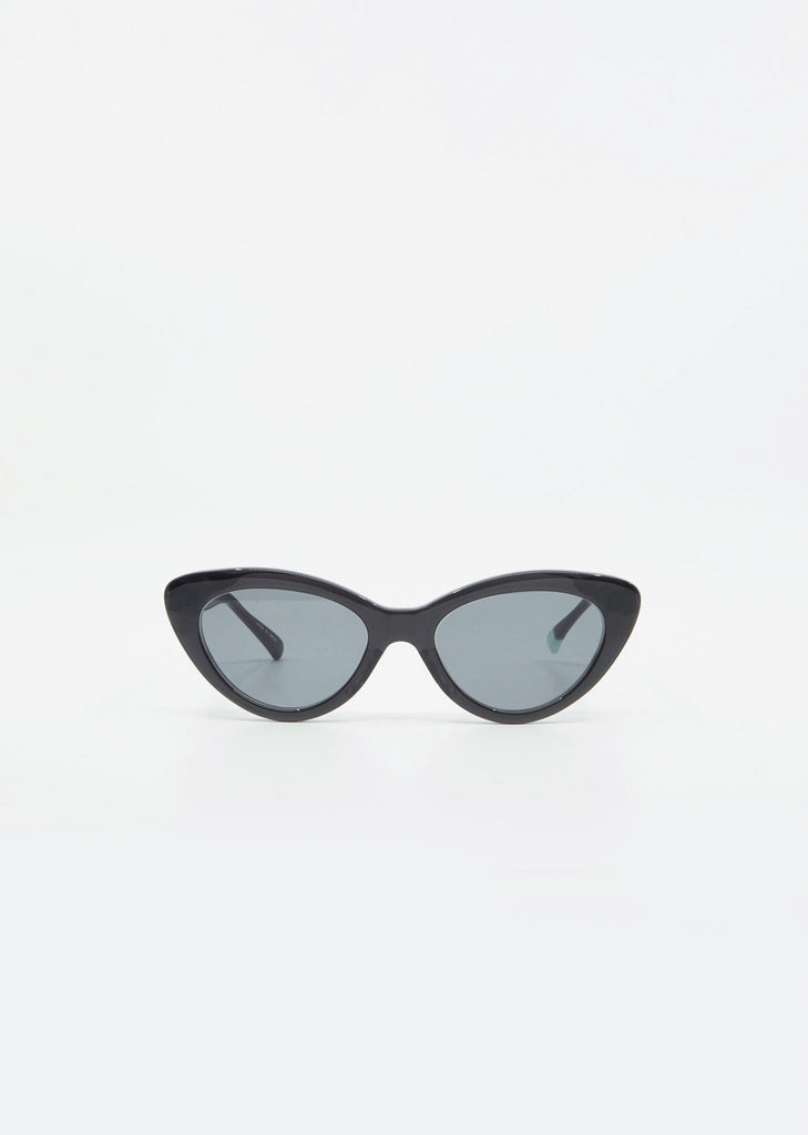 817 Blanc Lnt. sunglasses BE0022 in Clear Black - Grey. Handcrafted in Japan, slightly clear black acetate frame cat-eye sunglasses with grey lens and black arms. Detailed with the label's signature tip in mint green on one side.