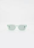 817 Blanc Lnt. sunglasses BE001 Sun in Mint - M, Grey. Handcrafted in Japan, mint color acetate frame sunglasses with medium grey lens. Detailed with the label's signature tip in contrast clear grey on one side.
