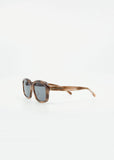 817 Blanc Lnt. sunglasses BE002 in Rose Tortoise - Grey. Handcrafted in Japan, rose tortoise acetate frame sunglasses with grey lens. Detailed with the label's signature tip in contrast clear orange on one side.