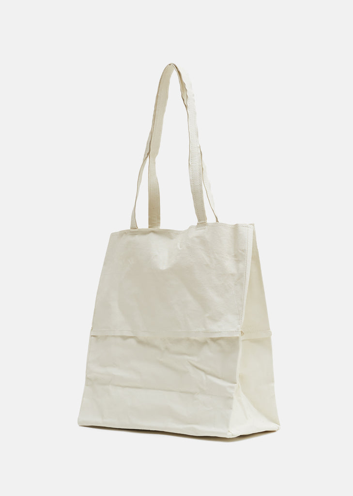 The label's No.3 cotton canvas handbag has a hand-lacquered finish and dual shoulder straps. This open-top cotton bag has noticeable stitching, and has been lacquered for a finish that evokes the painting process. It will age and change with wear, gradually allowing glimpses of the material beneath as the piece becomes more supple. This bag features a large interior compartment with one pocket. Includes designer dust bag. Measures 13.18” W x 14" H x 5.5" D. Strap drop: 25.2". Color: Off-White. 100% Cotton. Handmade in Spain.