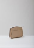 Small handmade cosmetic clutch in light-beige Nappa leather, finished with black painted edges and tonal suede lining. Structured rectangular silhouette. Gently rounded topline. Recessed, expandable sides. Tonal top-stitching. Polished silver-tone metal zip-top closure; tonal leather pull. Single interior compartment.