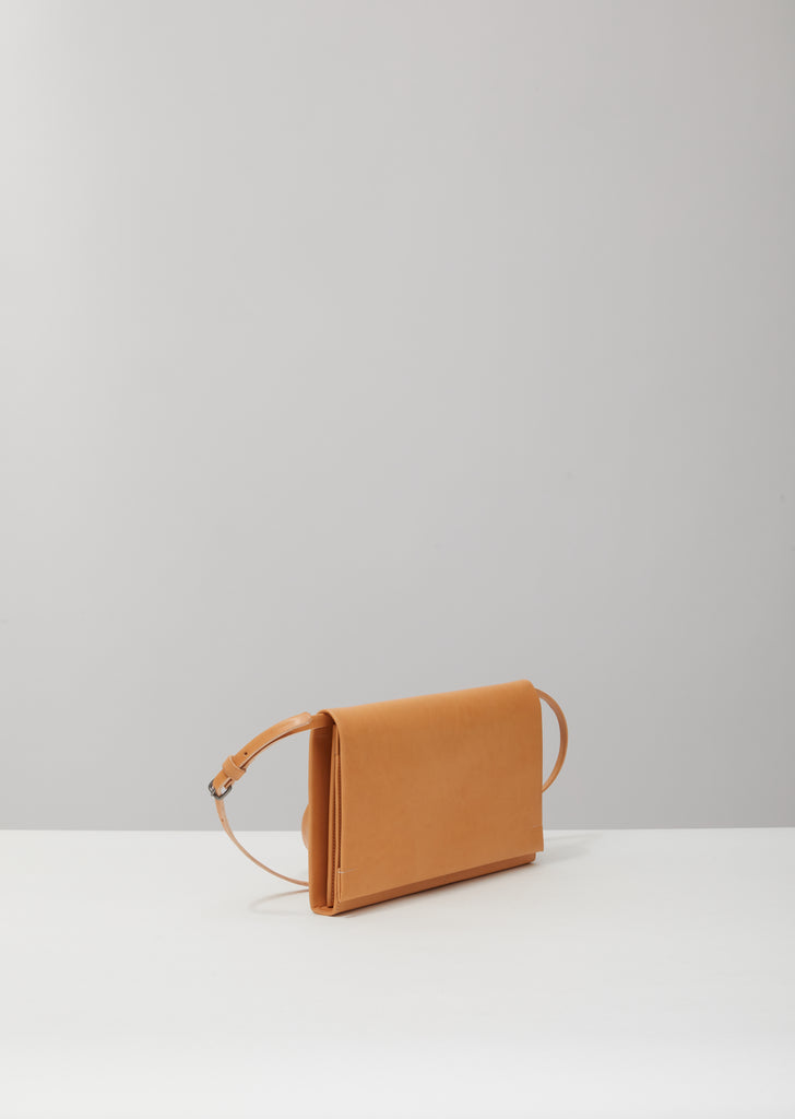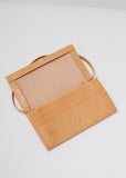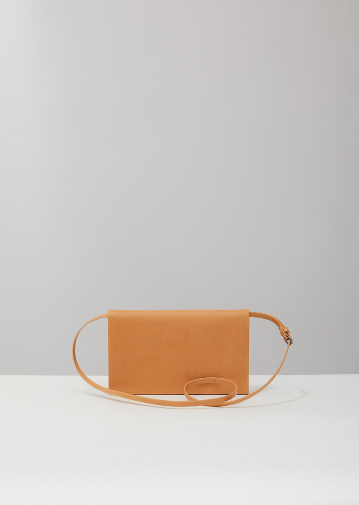 Natural-tone rectangular wallet in double-tanned full-grain calfskin, finished with a natural vegetable dye that allows a beautiful patina to develop over time. This minimal, accordion-gusseted style includes a removable, adjustable carry strap for crossbody wear.