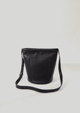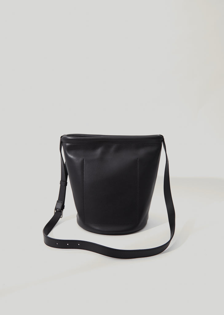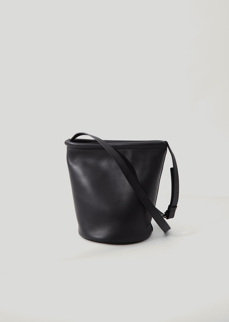 Isaac Reina Bond Small Swing Bucket Bag in double-tanned full-grain calfskin, a structured classic bucket bag with adjustable strap. A signature style.