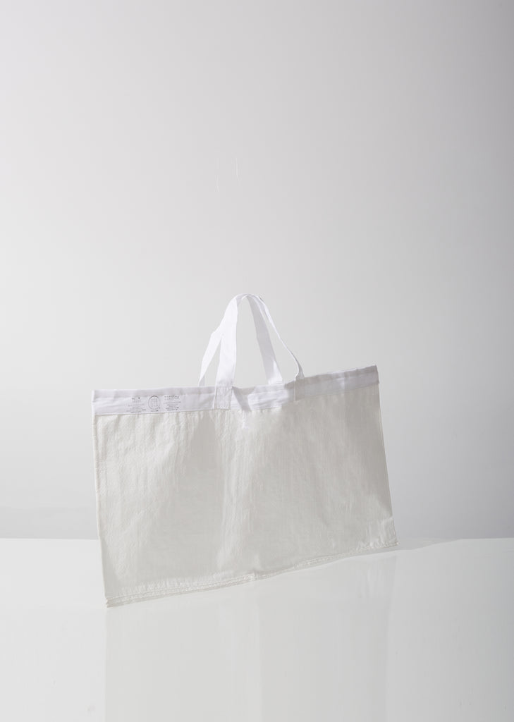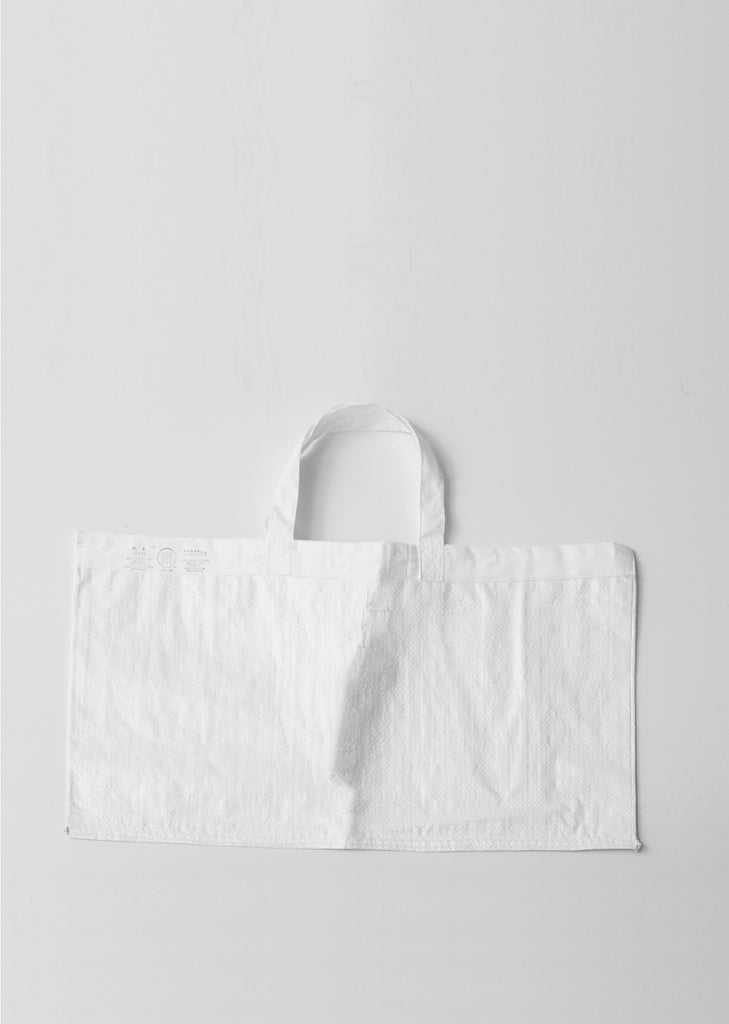 A large rectangular top-handle shopper made from recycled, worn-in parachute fabric. From PUEBCO, the Tokyo-based purveyor of sustainable, practical accessories.