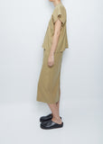 Baserange kahki green v-neck top with exposed binding detail in a textured raw silk.