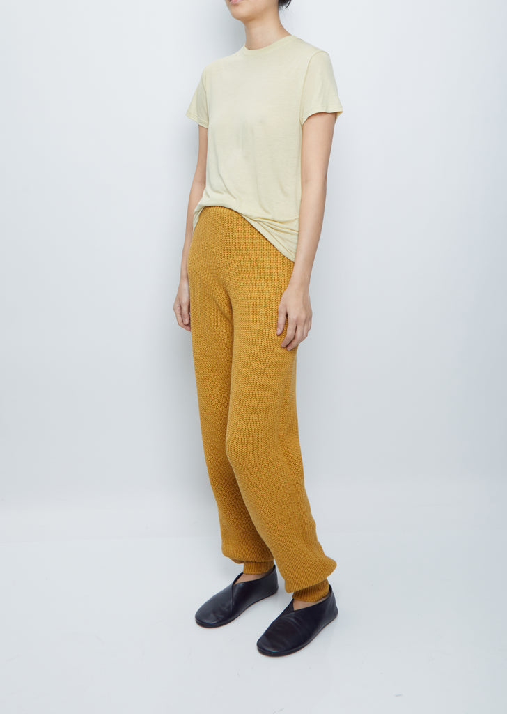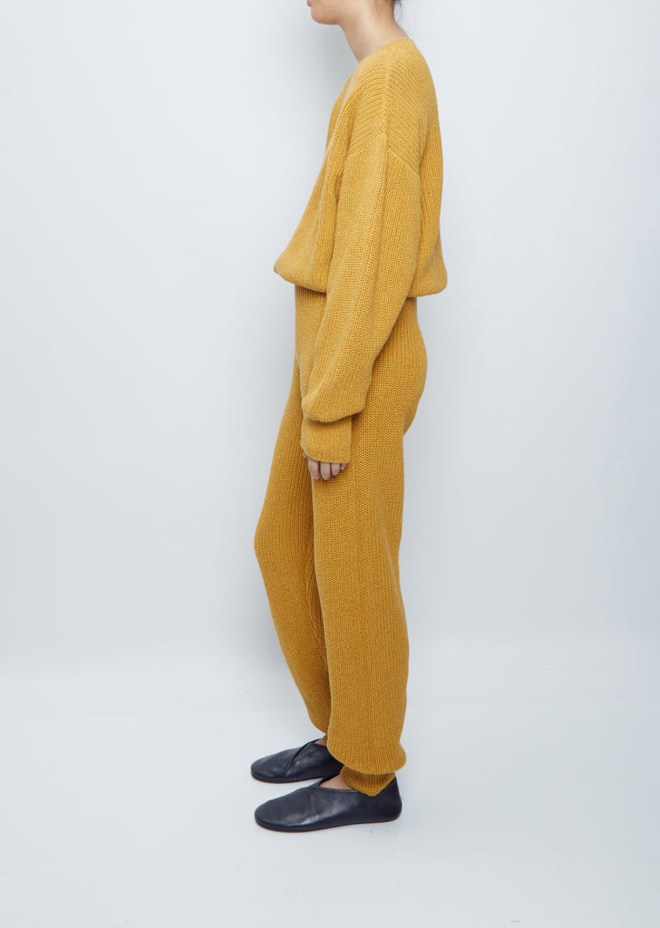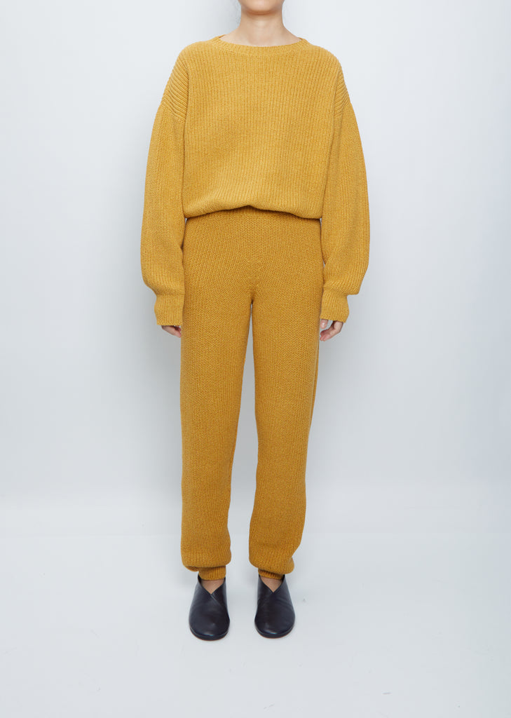 Baserange canary gold melange high-waisted jogger sweatpants in a heavyweight rib knit organic cotton.
